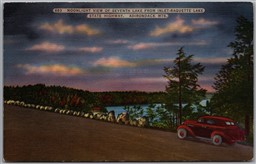 Postcard Raquette Lake New York Scenic Moonlight View of Seventh Lake from Hwy