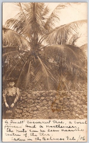 RPPC 1906 Bahamas Women In Front of Coconut Tree to Strat...