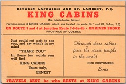 Previous owner of Ernest Cabins, which was located on Route No. 7 and 9B, St-Luc, P.Q.