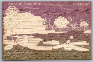 Postcard Chicago Illinois c1906 Embossed Scene At Lincoln Park Canoes Boat House