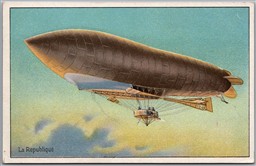 | Notes | La Republique, an airship of the semi-rigid type, was built for the French Government by Lebaudy Bros., and made its first flight in September, 1908, covering a distance of 200 kilometres in 1½ hours, returning to its starting point without descent. In length it was about 210 ft., while it was fitted with twin screws driven by a motor of 80 h.p. A sister ship to La Republique was La Patrie, which broke away from its moorings and was never found. La Republique in 1909 also met with disaster. |