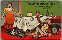 Postcard c1911 Boarding House Life Comic Supper Party 3AM...