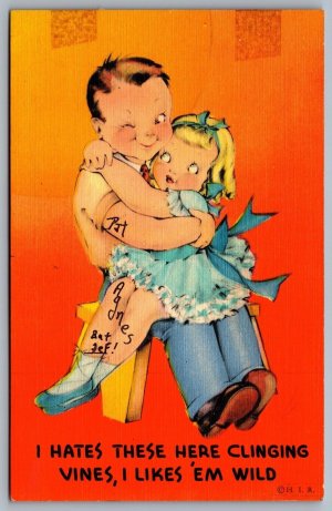 Postcard 1940s Boy Hugs Girl I Hates These Here Clinging ...